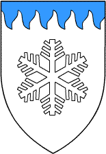 Proposed Arms: Argent, under a chief rayony azure, a snowflake proper fimbriated sable.